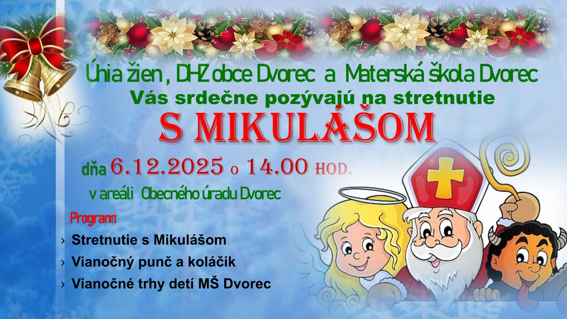 s MIKULÁŠOM dňa 6.12.2025 o 14.00 hod. v areáli Obecného úradu Dvorec.