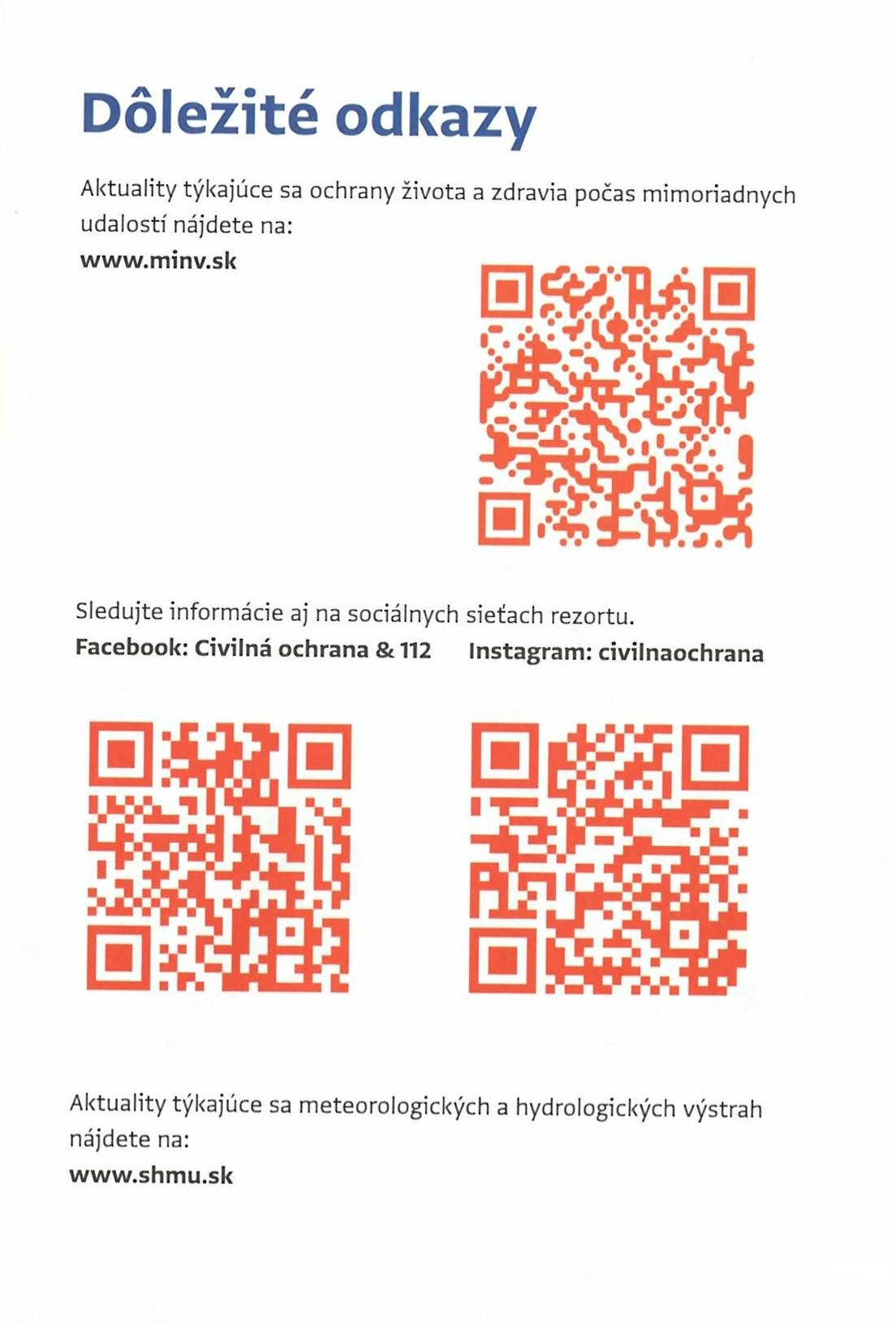 Ministerstvo vnútra Slovenskej republiky sekcia Krízového riadenia vydala brožúru, ktorú si viete pozrieť osobne v čase úradných hodín na obecnom úrade alebo cez QR kód: