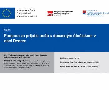 Podpora za prijatie osôb s dočasným útočiskom v obci Dvorec